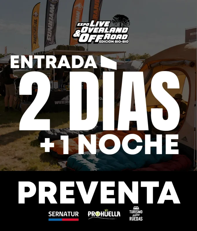 ENTRADA 2 DÌAS + NOCHE ACAMPADA – EXPOLIVE OVERLAND EDICIÒN BIOBIO + ESTACIONAMIENTO GRATIS